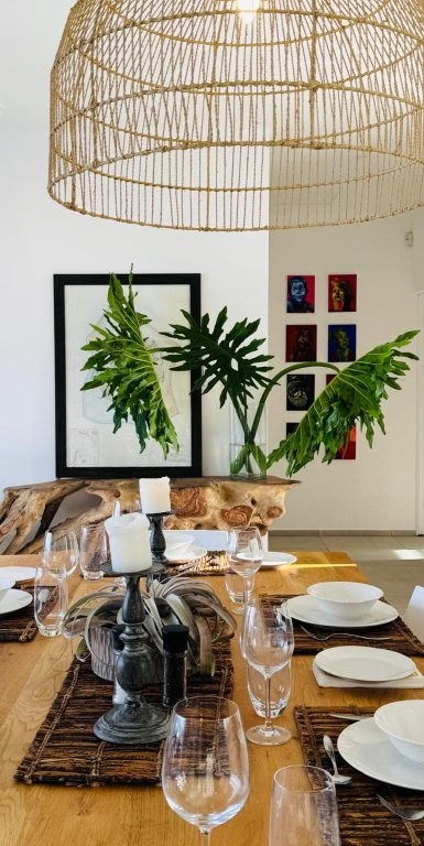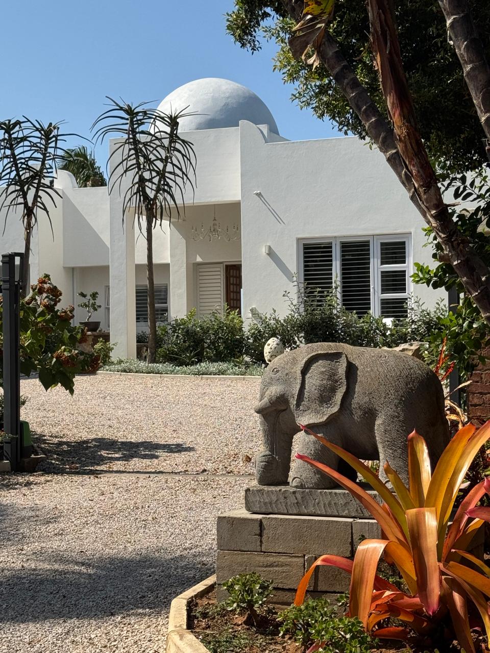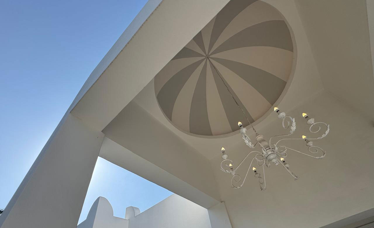 Blending design elements inspired by Mexico, Morocco, and India, the villa’s iconic central dome, exotic corner crenellations, and clean-lined Indian doorway create a space that feels both timeless and contemporary. Step inside and you’ll find interiors shaped by refined simplicity — curated artworks, organic textures, and an atmosphere that feels cinematic, romantic, and deeply serene.
