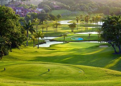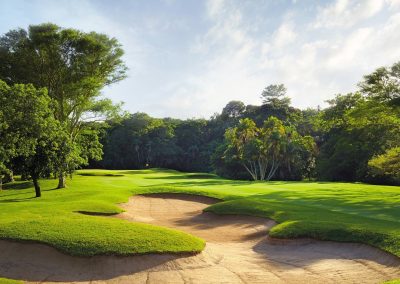 The KwaZulu-Natal (KZN) South Coast, often dubbed the “Golf Coast,” is home to several top-tier courses that perfectly blend challenging golf with spectacular natural beauty, chief among them being San Lameer Country Club, Wild Coast Sun Country Club, and Southbroom Golf Club. San Lameer offers a tropical paradise experience, with its 18-hole championship course winding through a pristine nature conservancy of wetlands and coastal forest, demanding precision in its tight, well-conserved layout. The Wild Coast Sun provides one of the country’s most dramatic golfing adventures on a rugged, undulating course designed by Robert Trent Jones Jnr, featuring the iconic Par 3 13th hole that plays across a waterfall, with every shot set against a backdrop of breathtaking ocean and ravine views. Completing the trio is the charming Southbroom Golf Club, a historic resort course that offers a blend of parkland and links characteristics where its famous Par 3 Fourth hole sits virtually on the beach, allowing golfers to enjoy a strategic, wind-affected round alongside views of the Indian Ocean and coastal wildlife.